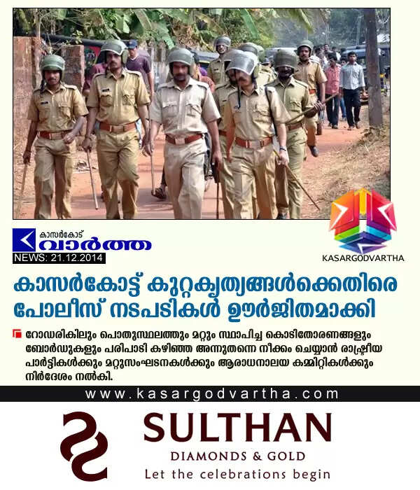 കാസര്കോട്ട് കുറ്റകൃത്യങ്ങള്ക്കെതിരെ പോലീസ് നടപടികള് ഊര്ജിതമാക്കി