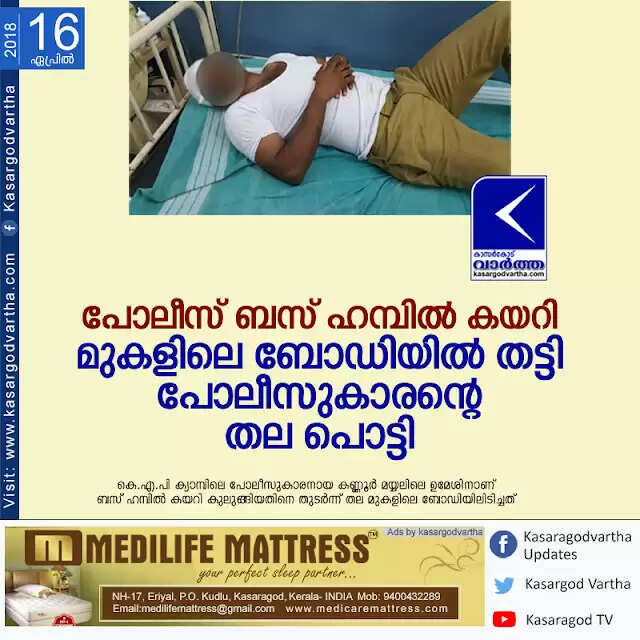 പോലീസ് ബസ് ഹമ്പില് കയറി; മുകളിലെ ബോഡിയില് തട്ടി പോലീസുകാരന്റെ തല പൊട്ടി