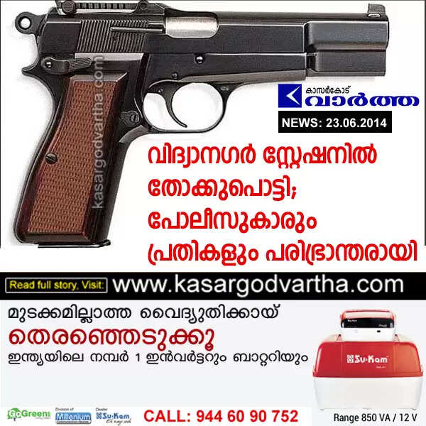വിദ്യാനഗര് സ്റ്റേഷനില് തോക്കുപൊട്ടി; പോലീസുകാരും പ്രതികളും പരിഭ്രാന്തരായി