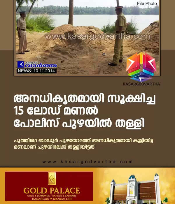 Keywords: Kasaragod, Sand, Puthige, River, Police, Kerala, Illegal Sand, Police re dump sands to river.