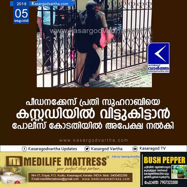 Keywords:  Molestation, Case, Police, Accused, Court, Custody, Kasaragod, Badiyadukka, News, Police submits report to court for getting Suharabi to Police custody