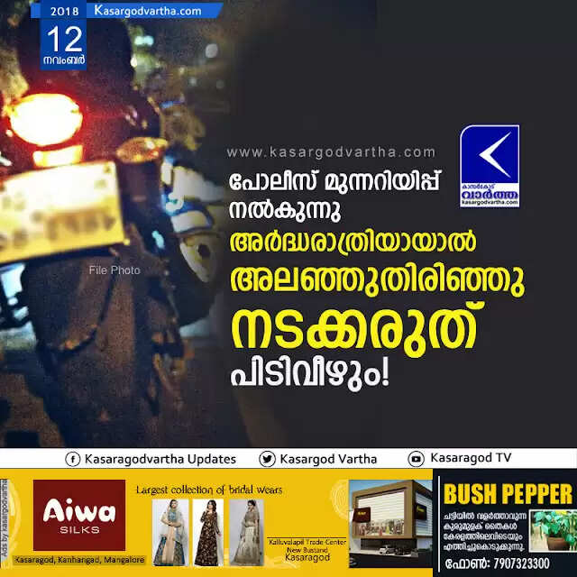 Keywords: Kasaragod, Kerala, news, Police, Police Warning night out