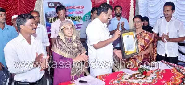 സര്വീസില് നിന്നും വിരമിക്കുന്ന ഗവണ്മെന്റ് യു.പി സ്കൂള് ഹിദായത്ത് നഗറിലെ ഹെഡ്മിസ്ട്രസ് സുധാമണി ടീച്ചര്ക്ക് പി.ടി.എയുടെ ഉപഹാരം എന്.എ.നെല്ലിക്കുന്ന് എം.എല്.എ നല്കുന്നു.