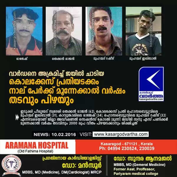 വാര്ഡനെ അക്രമിച്ച് ജയില് ചാടിയ കൊലക്കേസ് പ്രതിയടക്കം നാല് പേര്ക്ക് മൂന്നേക്കാല് വര്ഷം തടവും പിഴയും