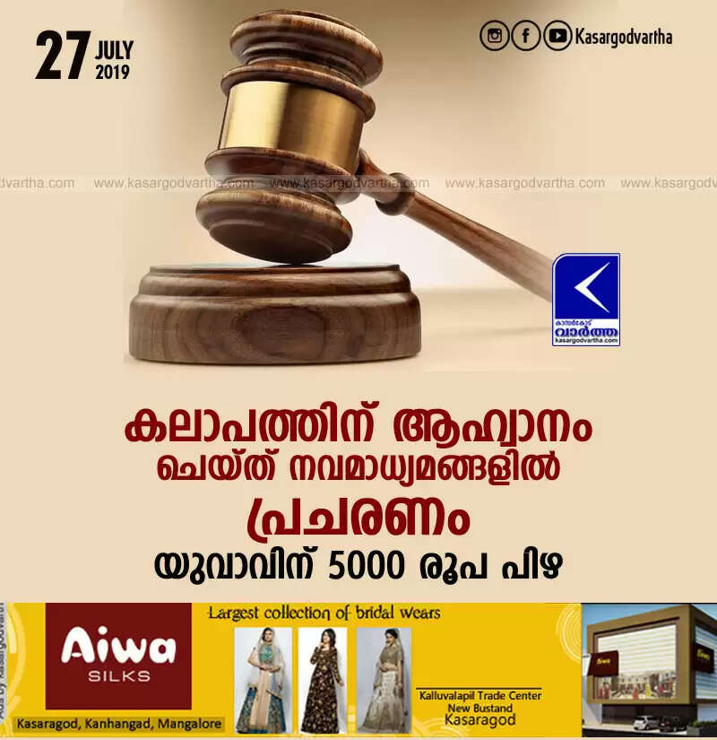 Keywords: Kerala, Kasaragod, News, Social-Media, Social networks, Fine, Court order, Propaganda for riots in social media: Youth fined.