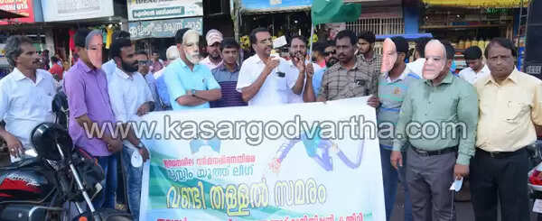 നേരത്തെ മുനിസിപ്പല് മുസ്ലിംലീഗ് പ്രസിഡന്റ് അഡ്വ. എന് എ ഖാലിദ് പരിപാടി ഫ്ളാഗ് ഓഫ് ചെയ്തു. പുതിയ കോട്ടയില് നിന്ന് മോഡിയടക്കമുള്ളവരുടെ മുഖംമൂടിയണിഞ്ഞ് വാഹനങ്ങള് തള്ളി തള്ളല് സമരം കോട്ടച്ചേരിയില് അവസാനിപ്പിച്ചു.