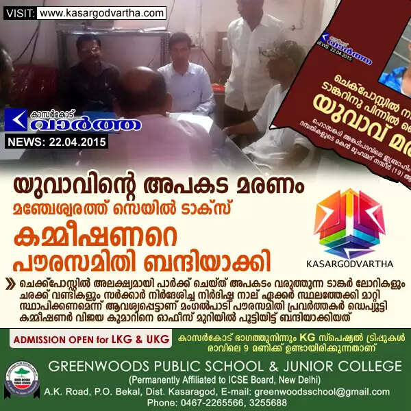 യുവാവിന്റെ അപകട മരണം: മഞ്ചേശ്വരത്ത് സെയില് ടാക്സ് കമ്മീഷണറെ പൗരസമിതി ബന്ദിയാക്കി