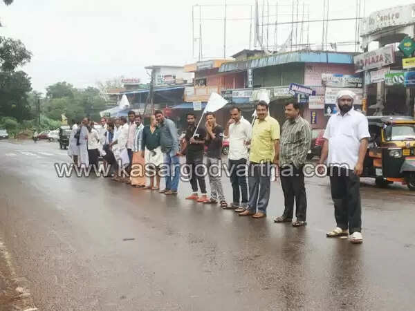 ബോവിക്കാനം ടൗണില് മനുഷ്യ ഡിവൈഡര് സ്ഥാപിച്ച് പ്രതിഷേധം
