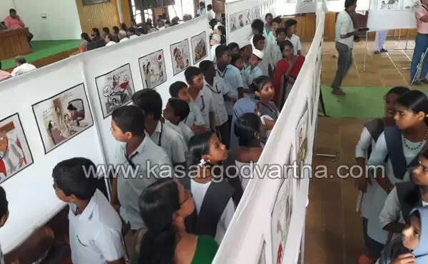 Keywords : Kasaragod, Cartoon, Programme, Inauguration, Felicitation, PV Krishnan's cartoon expo started.