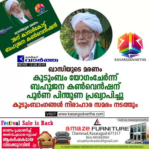 Keywords: Qazi death, C.M Abdulla Maulavi, Protest, Action Committee, Kasaragod, Kerala, Qazi Family, Qazi death: Support of family to new action committee, Advertisement Amaze Furniture.