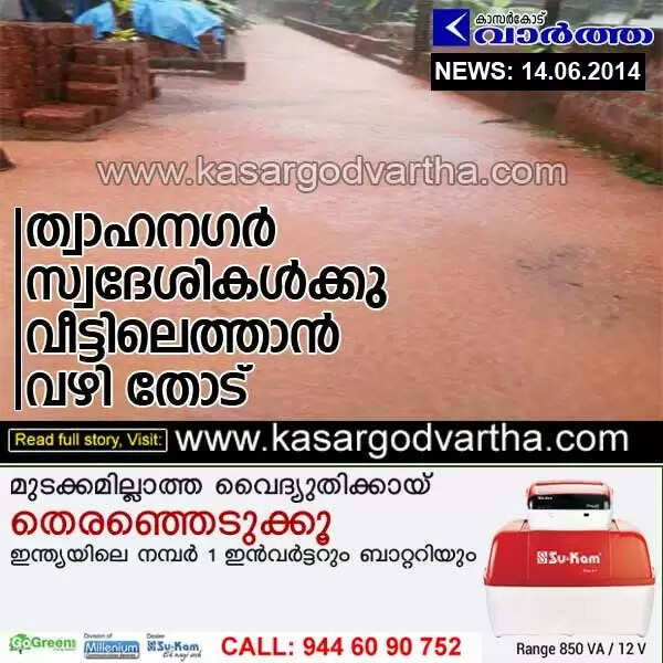 Keywords: Kasaragod, House, Rain, Water, Cherangai, Problem, Complaint, Natives, Rain water, Rain; Road becomes ditch.