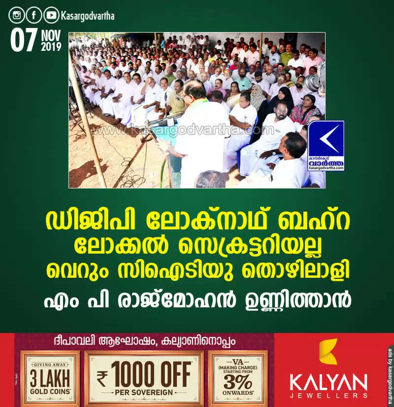 ഡിജിപി ലോക്നാഥ് ബഹ്റ ലോക്കല് സെക്രട്ടറിയല്ല, വെറും സിഐടിയു തൊഴിലാളി; എം പി രാജ്മോഹന് ഉണ്ണിത്താന്