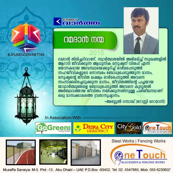 Keywords : Kasaragod, Kerala, Ramadan Message 2105, Abdul Razak Rossi Romani, Ramadan Nanma 2015- Abdul Razak Rossi Romani.