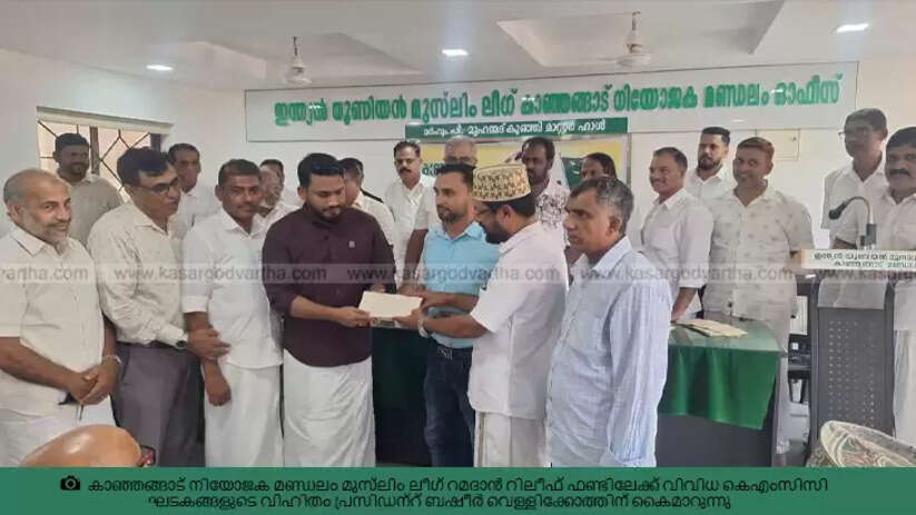 Kanhangad Muslim League distributed financial aid worth five and a half lakh rupees as part of Ramadan relief, with contributions from Metro Group of Companies, Safe Line, and various KMCC units in Gulf countries.