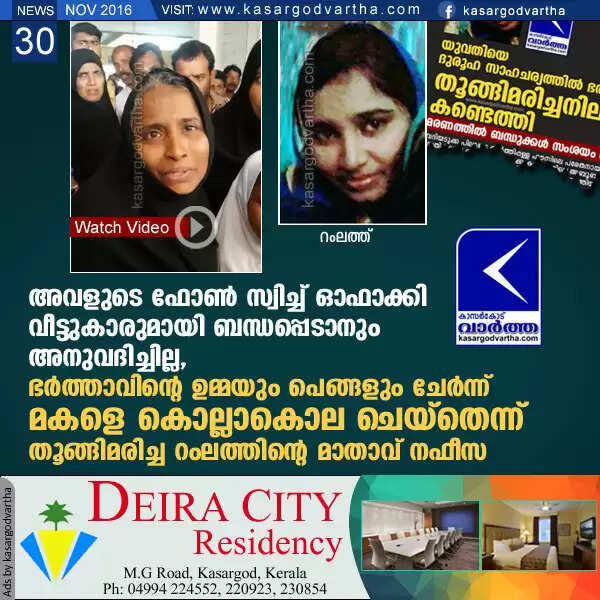 Keywords: Kasarag od, Kerala, Death, suicide, Police, Investigation, husband, Family, Molestation, Ramla's death: allegation against husband and family