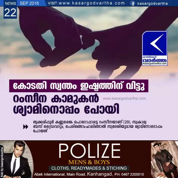 Keywords : Trikaripur, Love, Court, Girl, Family, Bus, Ramseena, Shyam, Eloped.