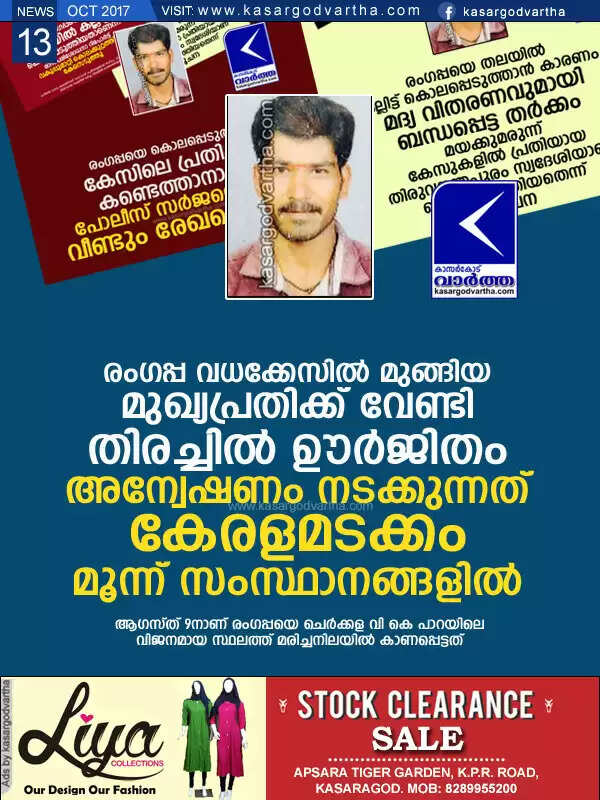 രംഗപ്പ വധക്കേസില്‍ മുങ്ങിയ മുഖ്യപ്രതിക്ക് വേണ്ടി തിരച്ചില്‍ ഊര്‍ജിതം; അന്വേഷണം നടക്കുന്നത് കേരളമടക്കം മൂന്ന് സംസ്ഥാനങ്ങളില്‍