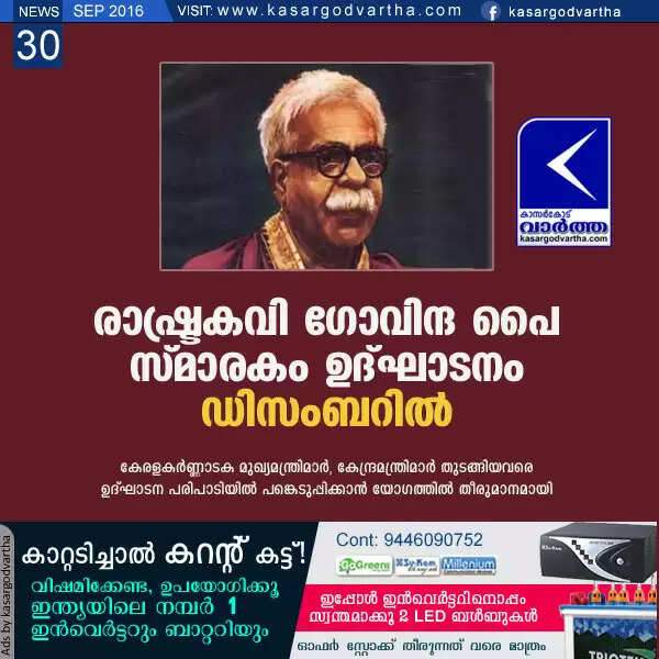 Keywords: Kerala, kasaragod, inauguration, Manjeshwaram, District Collector, Govinda pai, Memorial.