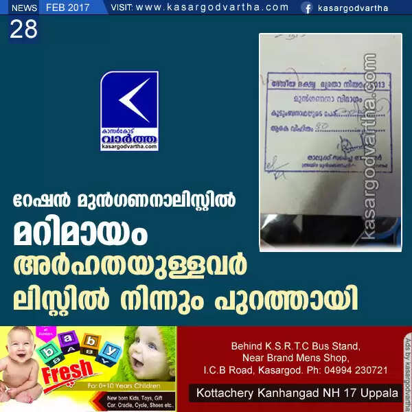 Keywords: Kasaragod, Ration Card, Family, List, Taluk supply office, Seal, Appeal, Food Department, Ration list beneficiaries outsted.