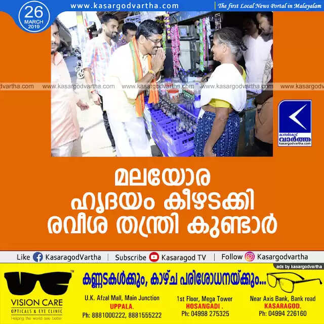 Keywords: Raveesha Thanthri Kundar election campaign continues, Chittarikkal, Kasaragod, News, BJP, Election.