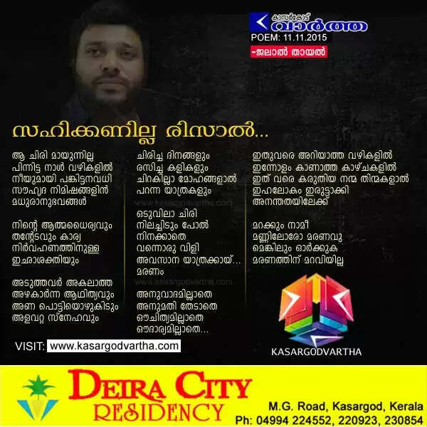 Keywords : Poem, Kasaragod, Friend, Death, Jalal Thayal, Risal Patel.
