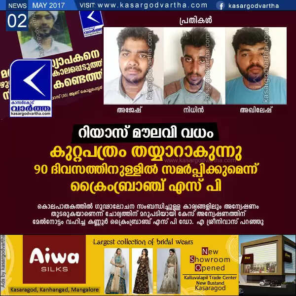 Keywords : Murder Case, Accuse, Kasaragod, Police, Investigation, Kerala, Court, Riyas Maulavi murder: Charge sheet gets ready, Ajesh Appu, Nithin Matha, Akhilesh.