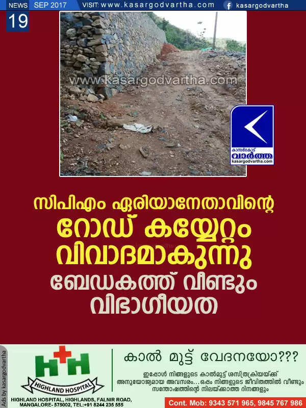 Keywords: Kasaragod, Bedakam, CPM, Road, News, Road encroachment controversy in Bedakam.