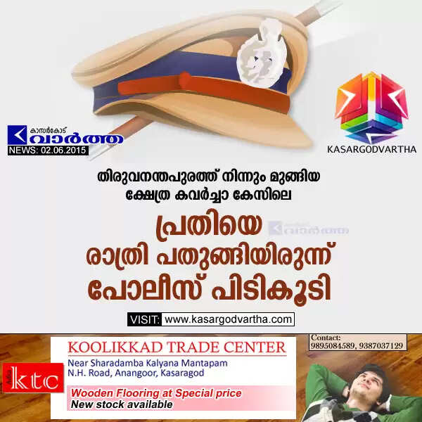 തിരുവനന്തപുരത്ത് നിന്നും മുങ്ങിയ ക്ഷേത്ര കവര്ച്ചാ കേസിലെ പ്രതിയെ രാത്രി പതുങ്ങിയിരുന്ന് പോലീസ് പിടികൂടി