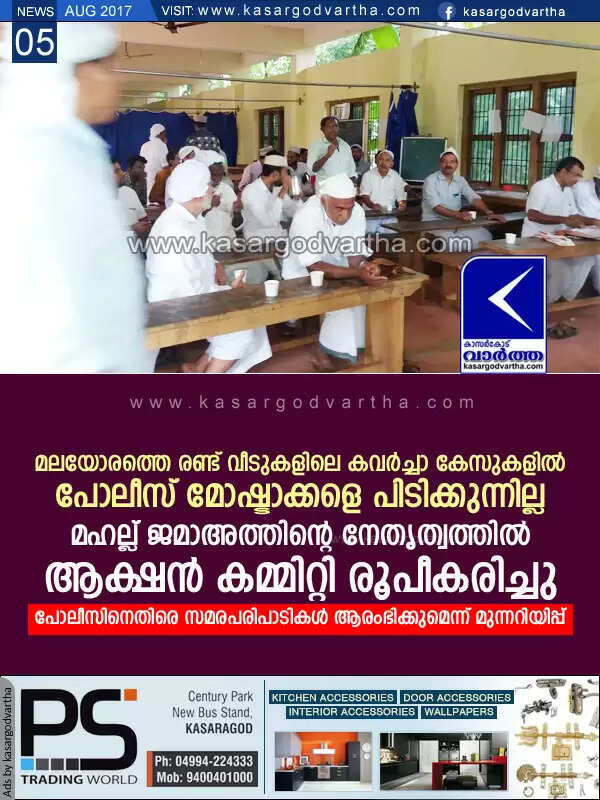 മലയോരത്തെ രണ്ട് വീടുകളിലെ കവര്‍ച്ചാ കേസുകളില്‍ പോലീസ് മോഷ്ടാക്കളെ പിടിക്കുന്നില്ല; മഹല്ല് ജമാഅത്തിന്റെ നേതൃത്വത്തില്‍ ആക്ഷന്‍ കമ്മിറ്റി രൂപീകരിച്ചു, പോലീസിനെതിരെ സമരപരിപാടികള്‍ ആരംഭിക്കുമെന്ന് മുന്നറിയിപ്പ്