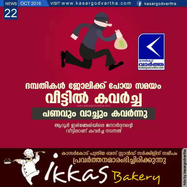Keywords: Kasaragod, Kerala, Adoor, Robbery, complaint, Police, Investigation, Robbery house at Adoor.