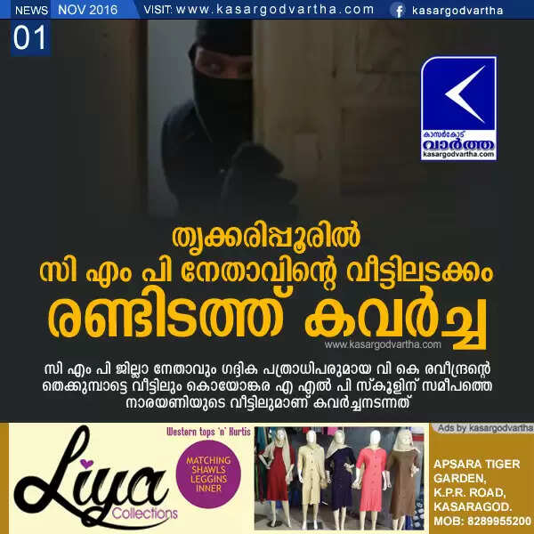 Keywords:  Trikaripur, Kasaragod, Kerala, House Robbery, CMP, Theft, Robbery in 2 places