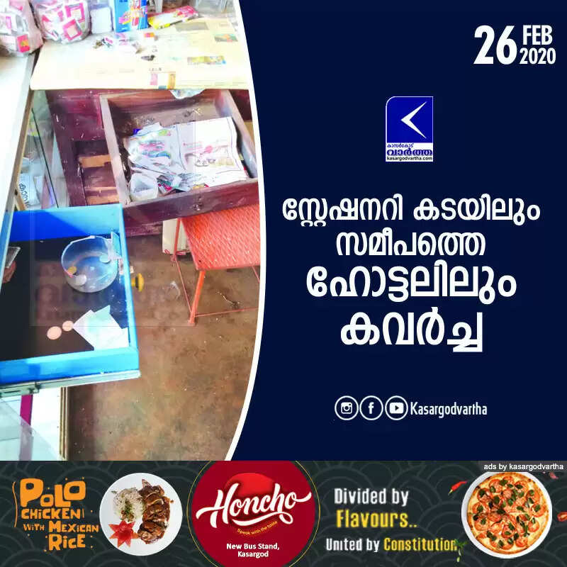 സ്റ്റേഷനറി കടയിലും സമീപത്തെ ഹോട്ടലിലും കവര്ച്ച