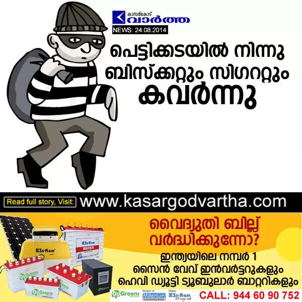 Keywords: Kasaragod, Kerala, Robbery, Badiyadukka, Shop, Biscuit, Packet, Cash,