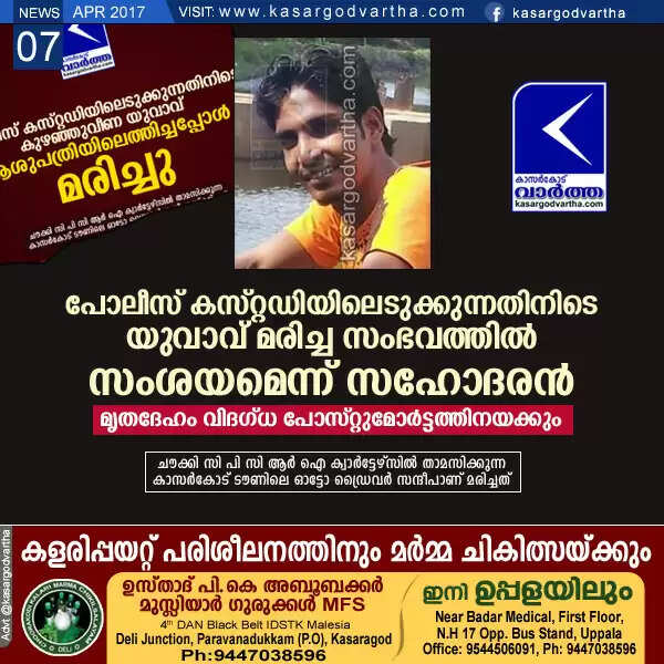 Keywords : Kasaragod, Youth, Death, Dead body, Police, Kerala, Sandeep, Police Custody, Brother, Complaint, Sandeep's dead body sent for detailed postmortem.