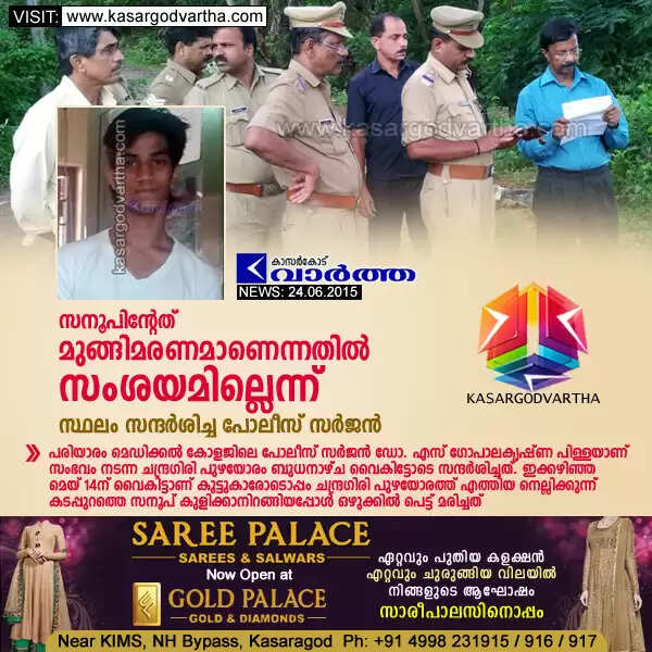 Keywords : Kasaragod, Death, Boy, River, Chandragiri-river, Friend, Police, Investigation, Sanoop, Advertisement Saree Palace.