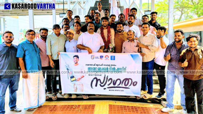 സന്തോഷ് ട്രോഫി താരം ദിൽഷാദ് മൊഗ്രാൽ നാട്ടിലെത്തി; റെയിൽവേ സ്റ്റേഷനിലും ജന്മനാട്ടിലും ഗംഭീര സ്വീകരണം