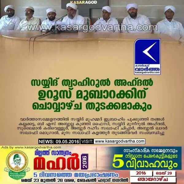 Keywords: Kasaragod, Muhimmath, Uroos, Press Meet, Flag, Inauguration, Morning, Pravasi, Mubarak, Tuesday.