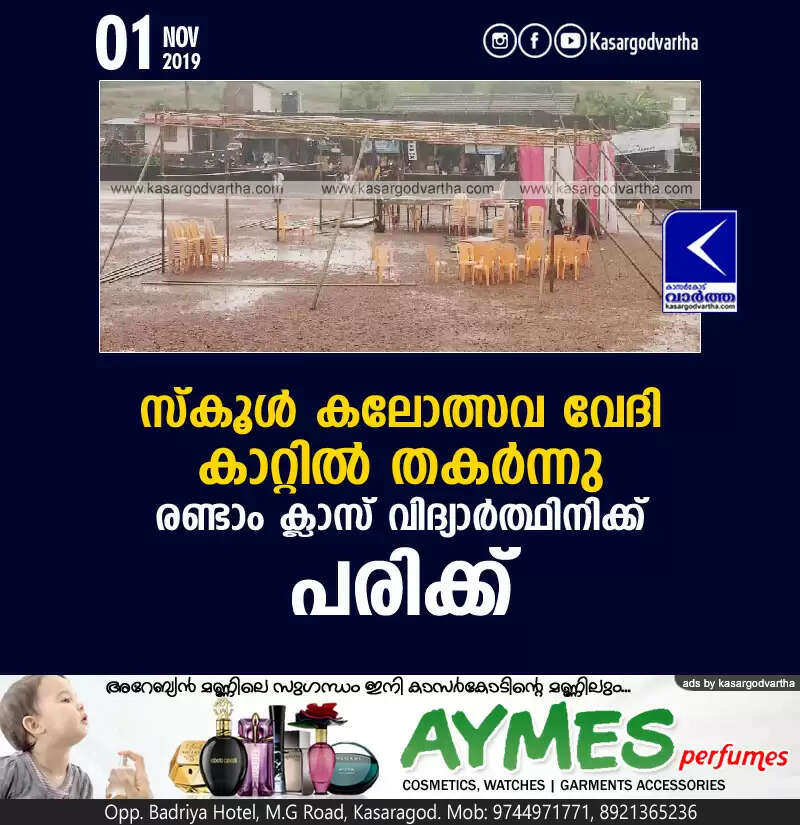 Keywords: Kasaragod, Kerala, news, Kumbala, Student, Sub-District Kalolsavam, School Kalolsavam stage damaged in heavy wind; Student injured
