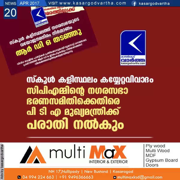 സ്‌കൂള്‍ കളിസ്ഥലം കയ്യേറ്റവിവാദം; സി പി എമ്മിന്റെ നഗരസഭാ ഭരണസമിതിക്കെതിരെ പി ടി എ മുഖ്യമന്ത്രിക്ക് പരാതി നല്‍കും