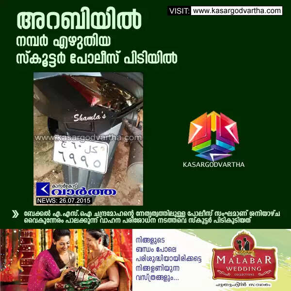 Keywords : Bekal, Police, Scooter, Kasaragod, Kerala, Udma, Number plate, Arabic Language.
