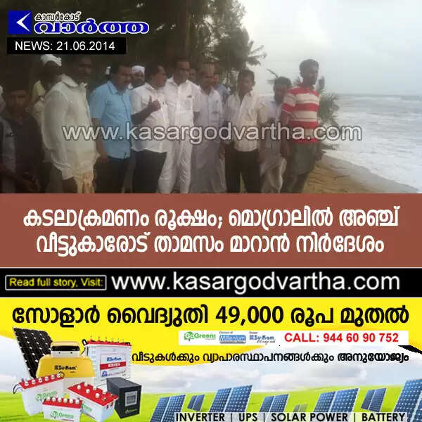 കടലാക്രമണം രൂക്ഷം; മൊഗ്രാലില് 5 വീട്ടുകാരോട് താമസം മാറാന് നിര്ദേശം
