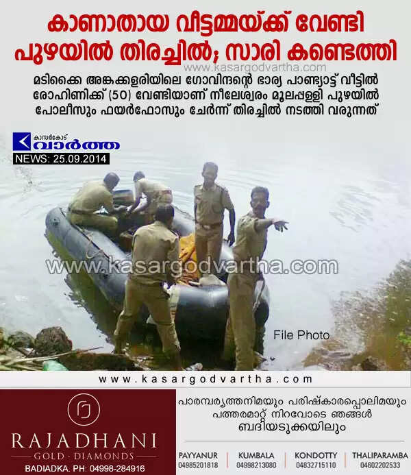 Keywords: Nileshwaram, Missing, Woman, River, Research, Kasaragod, Kerala, Search for missing woman in river.