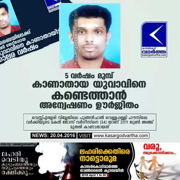 Keywords : Missing, Youth, Police, Investigation, Family, Complaint, Vellarikundu, Kasaragod, Jose Vurghese.