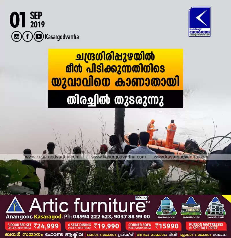 ചന്ദ്രഗിരിപ്പുഴയില് മീന് പിടിക്കുന്നതിനിടെ യുവാവിനെ കാണാതായി, തിരച്ചില് തുടരുന്നു
