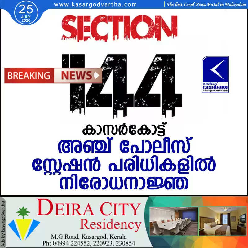 കാസർകോട്ട് അഞ്ച് പോലീസ് സ്റ്റേഷൻ പരിധികളിൽ നിരോധനാജ്ഞ