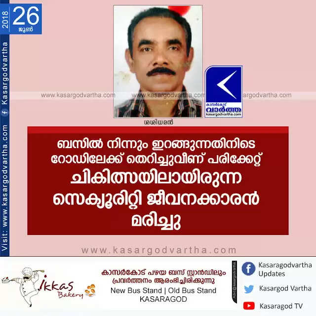 ബസില് നിന്നും ഇറങ്ങുന്നതിനിടെ റോഡിലേക്ക് തെറിച്ചുവീണ് പരിക്കേറ്റ് ചികിത്സയിലായിരുന്ന സെക്യൂരിറ്റി ജീവനക്കാരന് മരിച്ചു