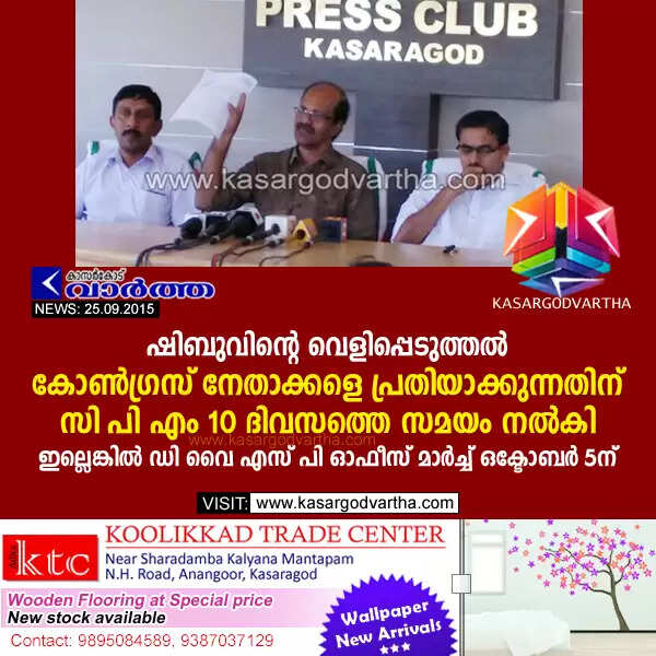 ഷിബുവിന്റെ വെളിപ്പെടുത്തല്: കോണ്ഗ്രസ് നേതാക്കളെ പ്രതിയാക്കുന്നതിന് സി പി എം 10 ദിവസത്തെ സമയം നല്കി; ഇല്ലെങ്കില് ഡി വൈ എസ് പി ഓഫീസ് മാര്ച്ച് ഒക്ടോബര് 5ന്