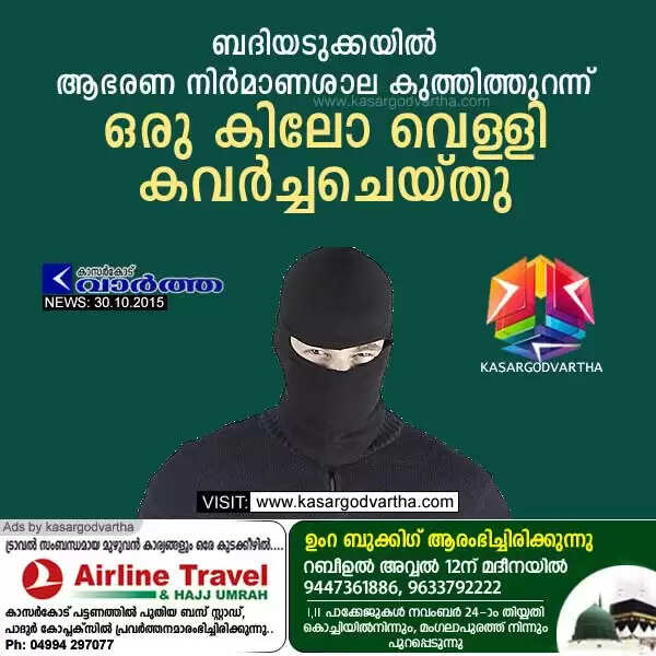 Keywords: Kasaragod, Badiyadukka, Jweller-robbery, Robbery, Theft, Silver robbed from Jwellery workshop, Airline Travels