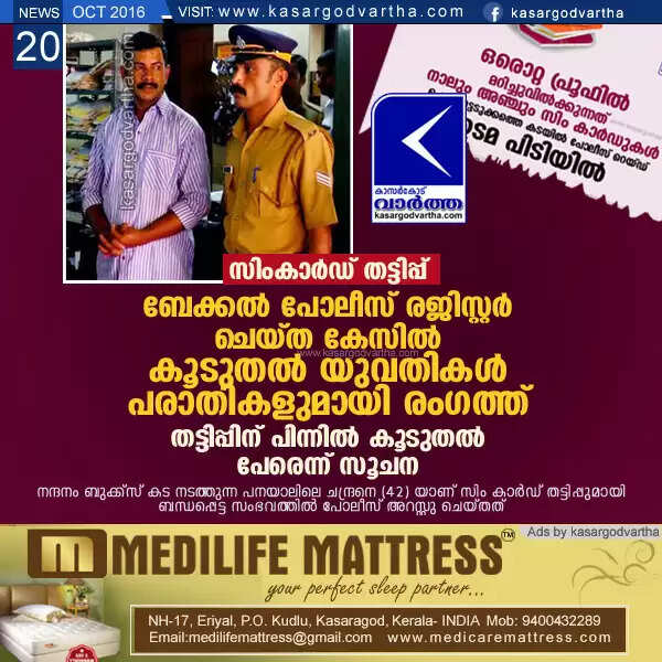 Keywords:  Kasaragod, Kerala, Bekal, Sim card, Cheating, Police, Register, Case, Complaint, Book Stall, Raid, Identity Card, Sim card cheating; police investigation started