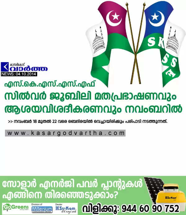 എസ്.കെ.എസ്.എസ്.എഫ് സില്‍വര്‍ ജൂബിലി മതപ്രഭാഷണവും ആശയവിശദീകരണവും നവംബറില്‍